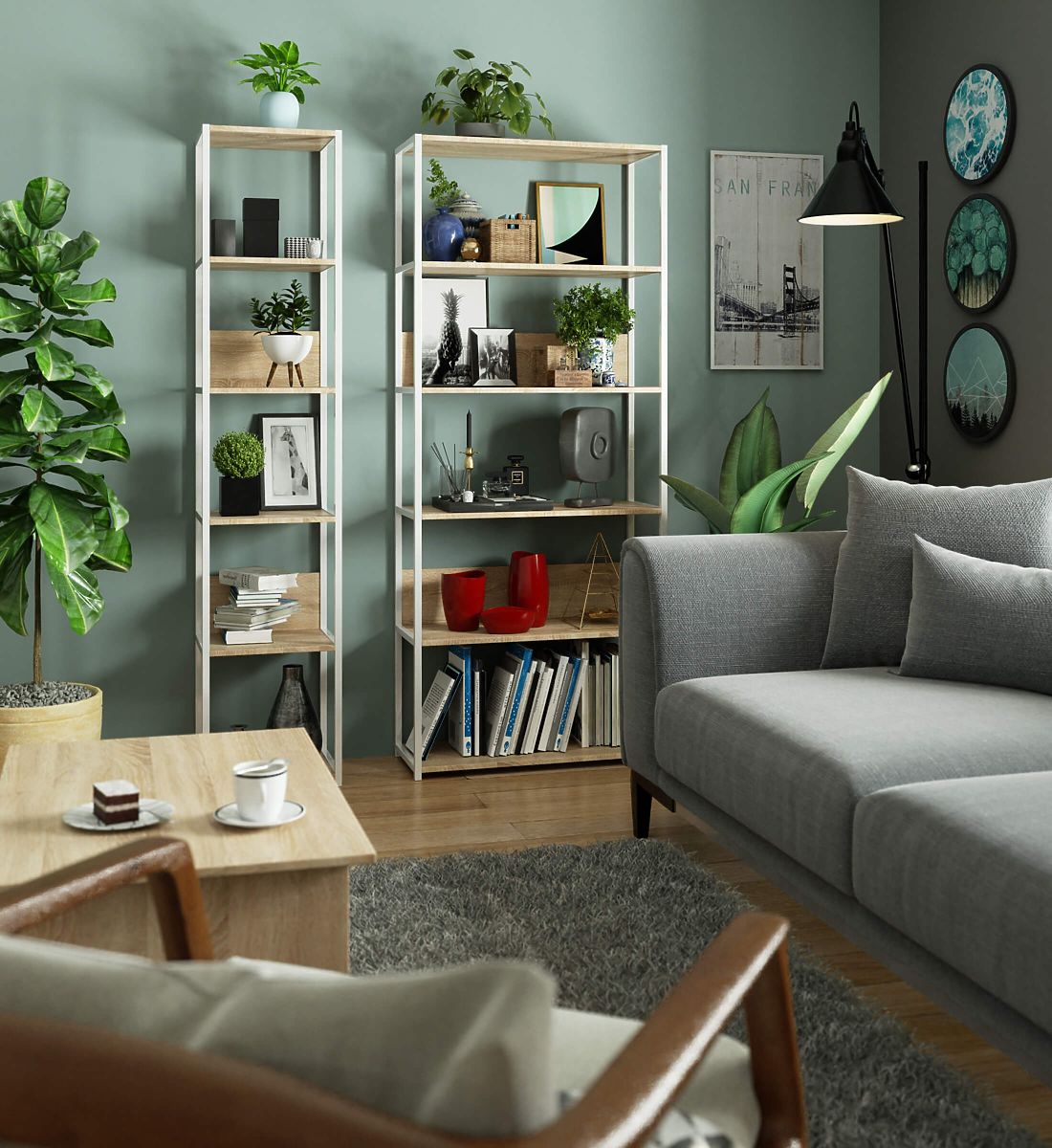The metal loft shelf is a practical and modern piece of furniture suitable for both the living room and the office. The shelf features a white metal frame and 6 shelves in Sonoma oak color. The shelves are made from 16 mm thick laminated board, a durable and abrasion-resistant material. The edges are protected with ABS edging, ensuring the furniture remains attractive even with intensive daily use. The shelf is equipped with 6 shelves, perfect for displaying items or keeping them within reach. Overall, it looks very stylish and modern.