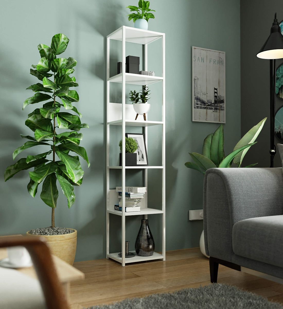 The metal loft shelf is practical and modern furniture, suitable for both the living room and the office. The shelf features a white metal frame and 6 white shelves. The shelves are made from 16 mm thick laminated board, a durable and abrasion-resistant material. The edges are additionally protected with an ABS edge, ensuring the furniture maintains its appearance even with very intensive daily use. The shelf is equipped with 6 shelves to place items you want to display or have at hand. Overall, it has a very stylish and modern look.