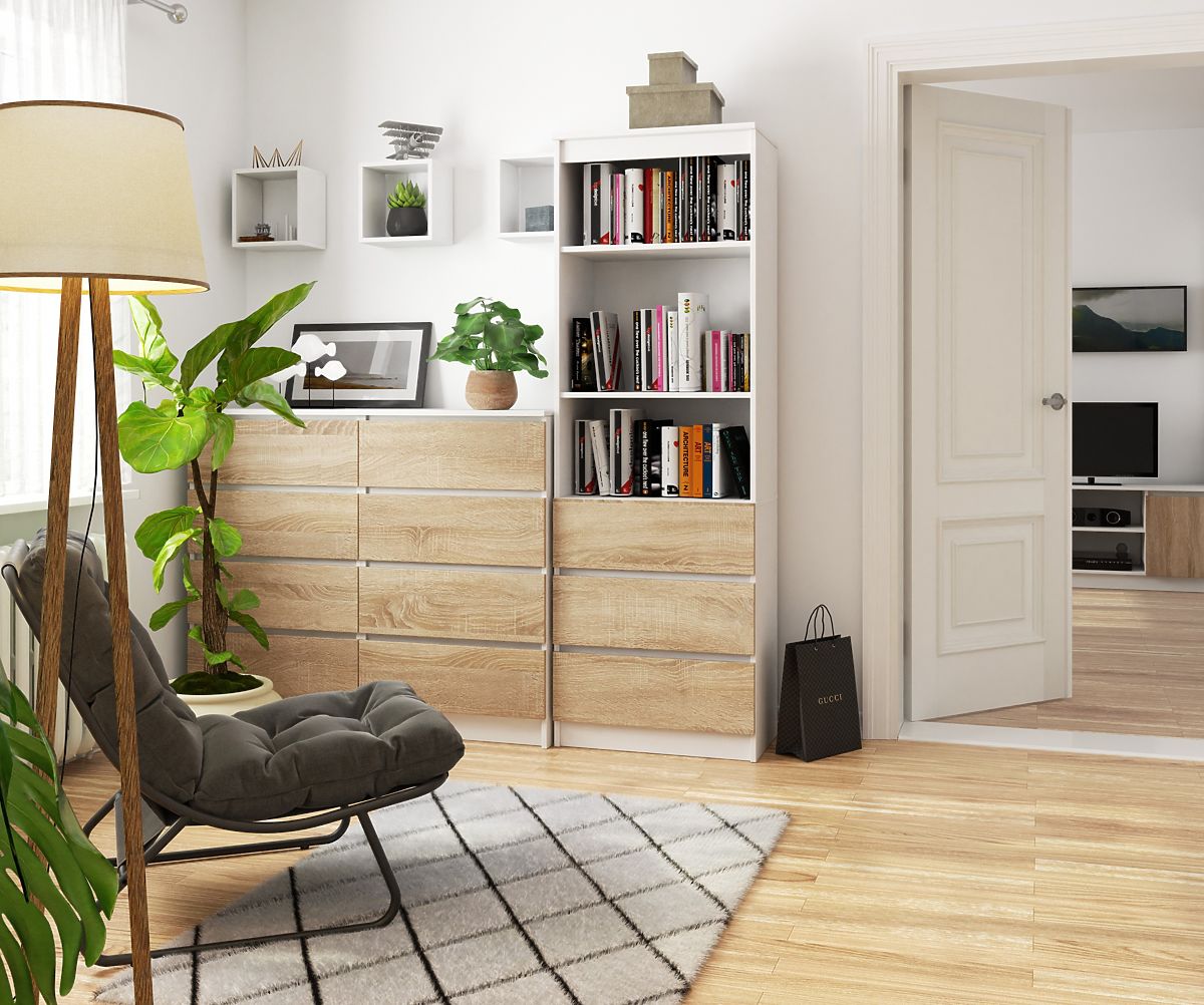 OFFICE SHELF CLP 60cm 3 DRAWERS 2 SHELVES Color White Fronts Sonoma