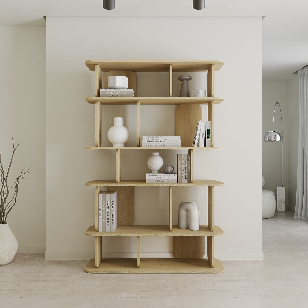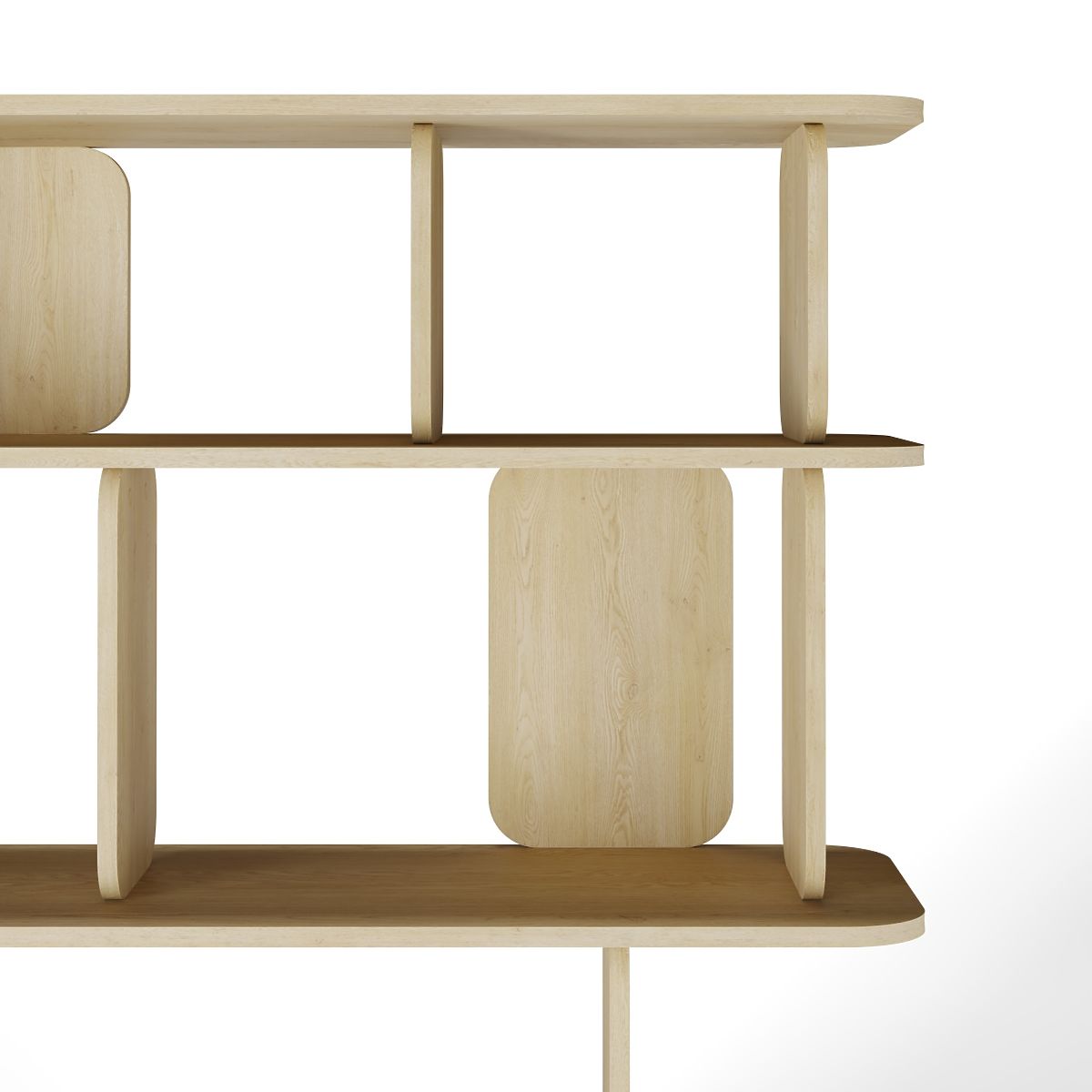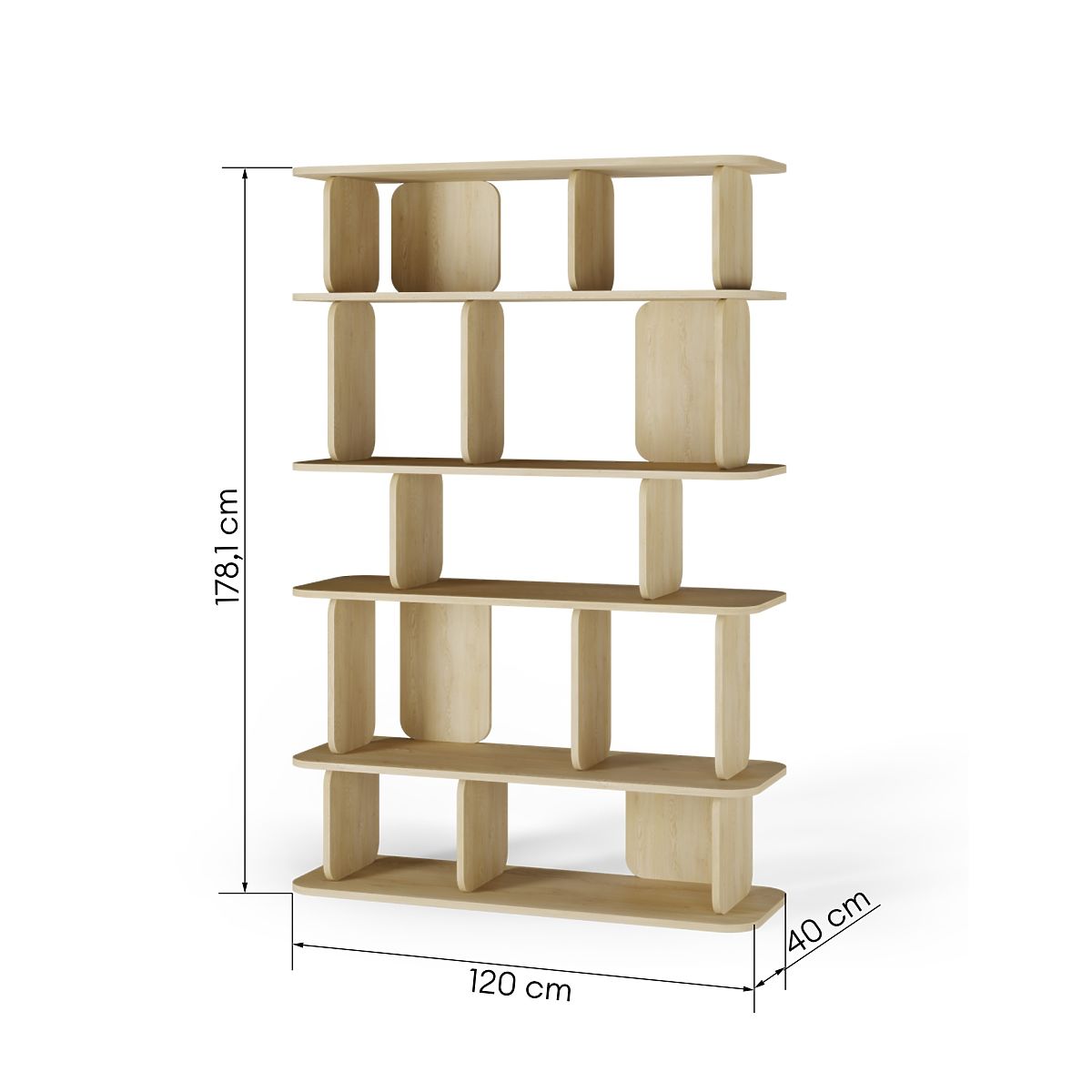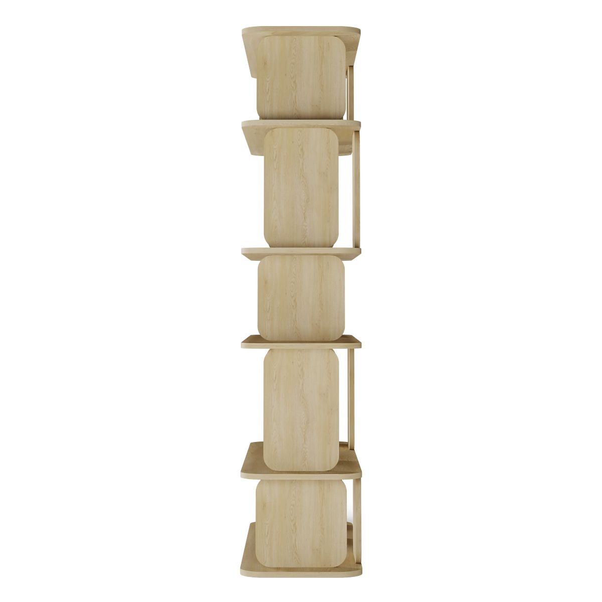 A modern 6-level shelf in Cremona Torro Oak with rounded edges. .. more