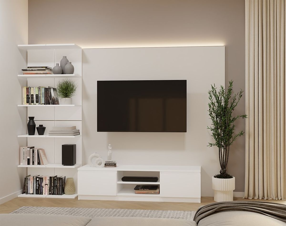 The 6P shelf is a minimalist and functional piece of furniture, perfect for the living room, office, student room, or home library. Thanks to its light, modern form and neutral white color, it easily adapts to many interior arrangements.