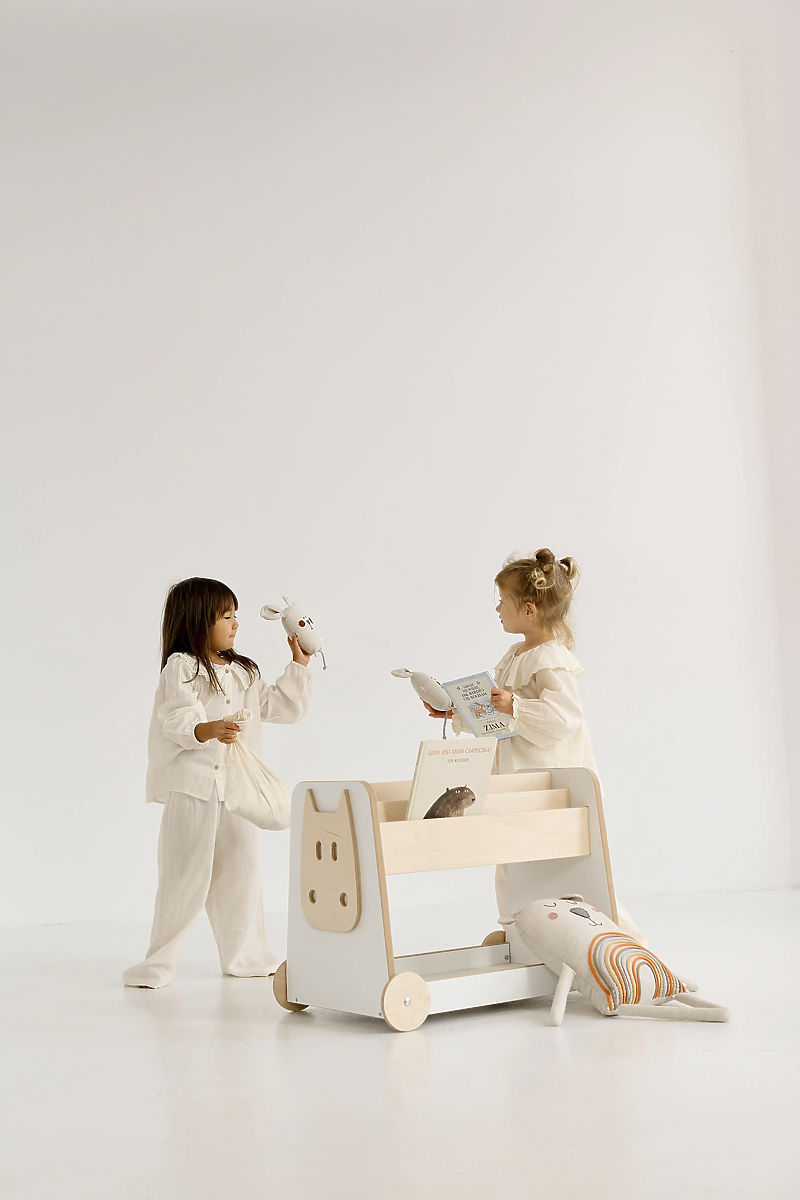 Wooden Toy Shelf with Wheels is a practical and functional addition to a child's room. Thanks to its four wheels, it can be easily moved without effort, even by the child. The double-sided design allows convenient access to books and toys from both sides, encouraging children's independence in playing and tidying up. The shelf offers ample storage space for books, games, and favorite toys, helping to maintain order in the child's room. Children naturally learn organization and putting things in their place.