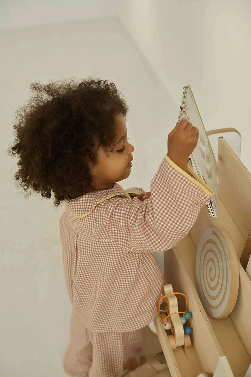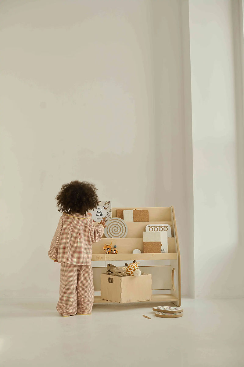 Wooden bookshelf is a practical and aesthetic solution for organizing a child's room. It combines a simple design with high functionality and adheres to Montessori principles that promote a child's independence. The open design allows easy access to books and toys, enabling children to store them independently. The shelf allows books to be displayed with covers facing forward, which is especially ideal for younger children who cannot read yet – they can easily recognize their favorite book by its picture. Three library shelves accommodate books of various sizes, and the lower part offers additional storage space for toys, puzzles, or board games.