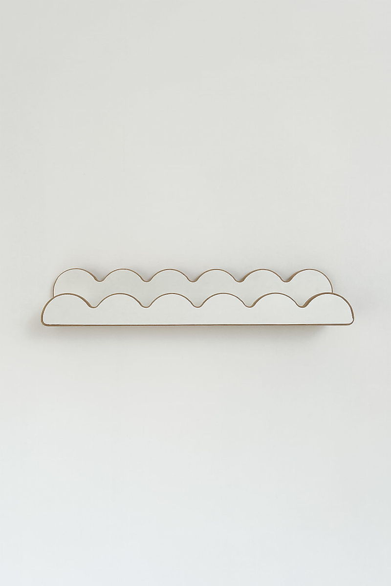 Shelf WAVE in white is a practical and decorative addition to a child's room, helping to maintain order while looking great. With the movable frill, you can change its appearance and the way you display or hide your child's favorite items – books, figurines, photos, or small decorations. The elegant design of the shelf allows you to combine several pieces side by side and create an original, functional, and aesthetic wall that grows with the child's needs. Rounded edges and smooth finish ensure safe use even for the youngest.