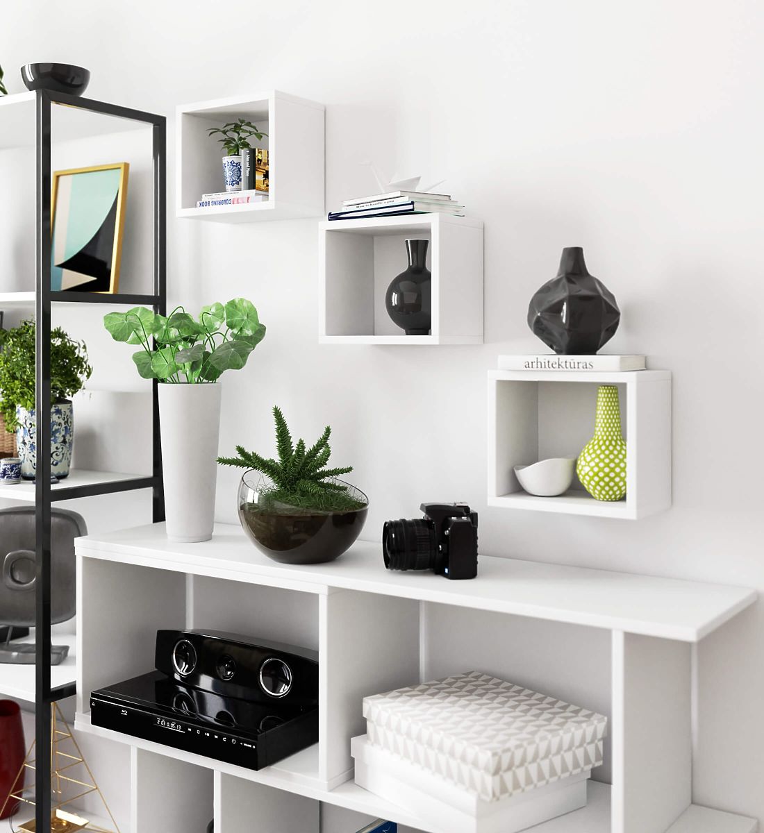 When creating our offer, we place special emphasis on ensuring that our products combine high aesthetic values with considerable functionality. The white wall shelves possess both of these qualities. They are a practical solution for gaining additional space. You can place your favorite books, souvenirs, flowers, cosmetics, or trinkets on them. By hanging the shelves, you not only gain more space but also a beautiful, unique decoration. Walls will no longer have to be empty, and the interior will finally look carefully finished. The shelves are made from an exceptionally durable and abrasion-resistant laminated board, and their edges are reinforced with ABS edges. This guarantees their considerable durability. The set of 3 shelves is ideally suited for an elegant living room, a stylish study, or an eclectic bedroom. It can also become an indispensable element of a modern workshop and a fashionable office. Regardless of the choice of location, the shelves will always present themselves equally well.