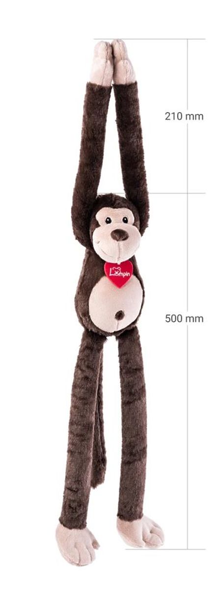 The plush monkey from Lumpin is perfect as a pet or a sleeping toy. It will charm every child and become an irreplaceable play companion. Like other Lumpin products, the monkey features a characteristic felt heart on its neck. To keep the toy clean, it can be hand washed at a temperature of 30 degrees. Age: 0+ Dimensions: 70 cm Reference: WD94234