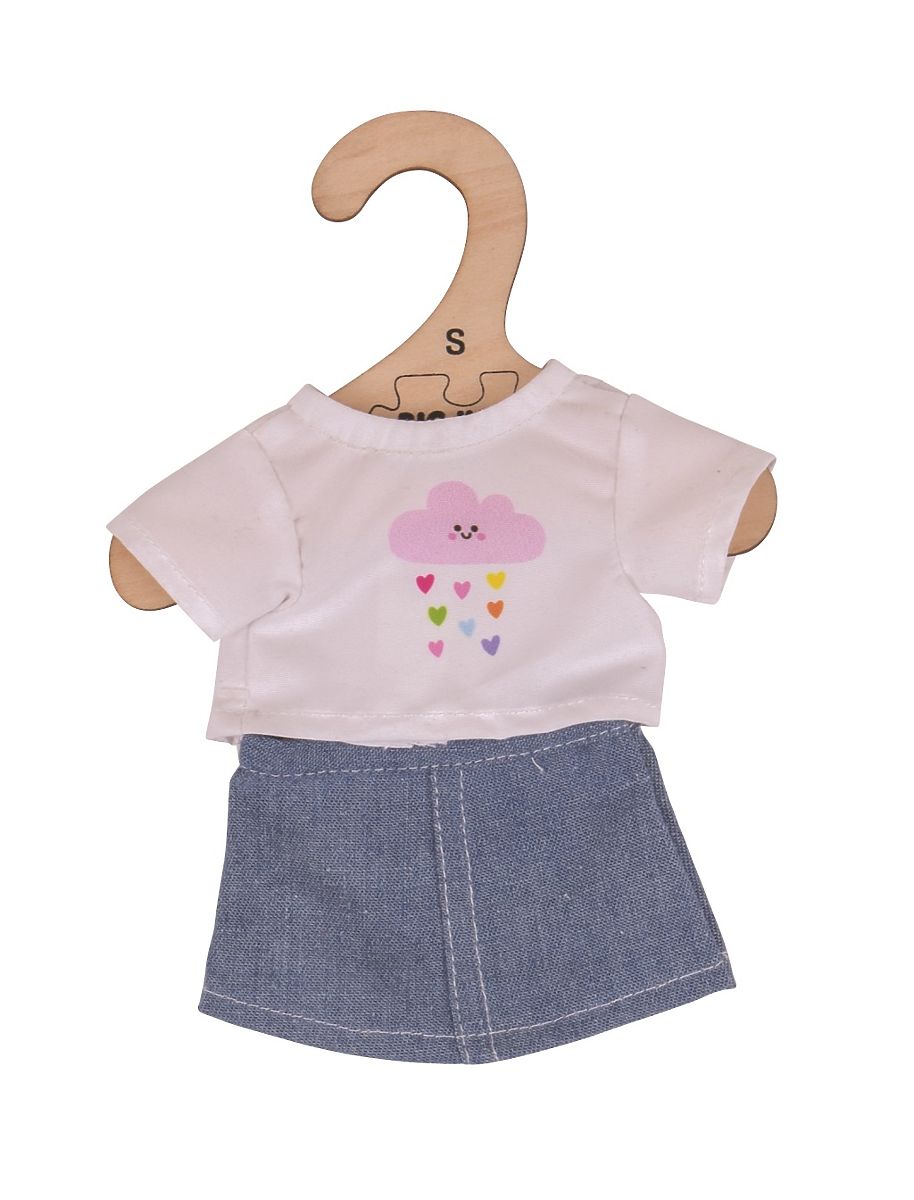 Banaby.eu » Toys / Doll Strollers & Accessories / Bigjigs Toys White T-shirt with Denim Skirt for 28cm Doll