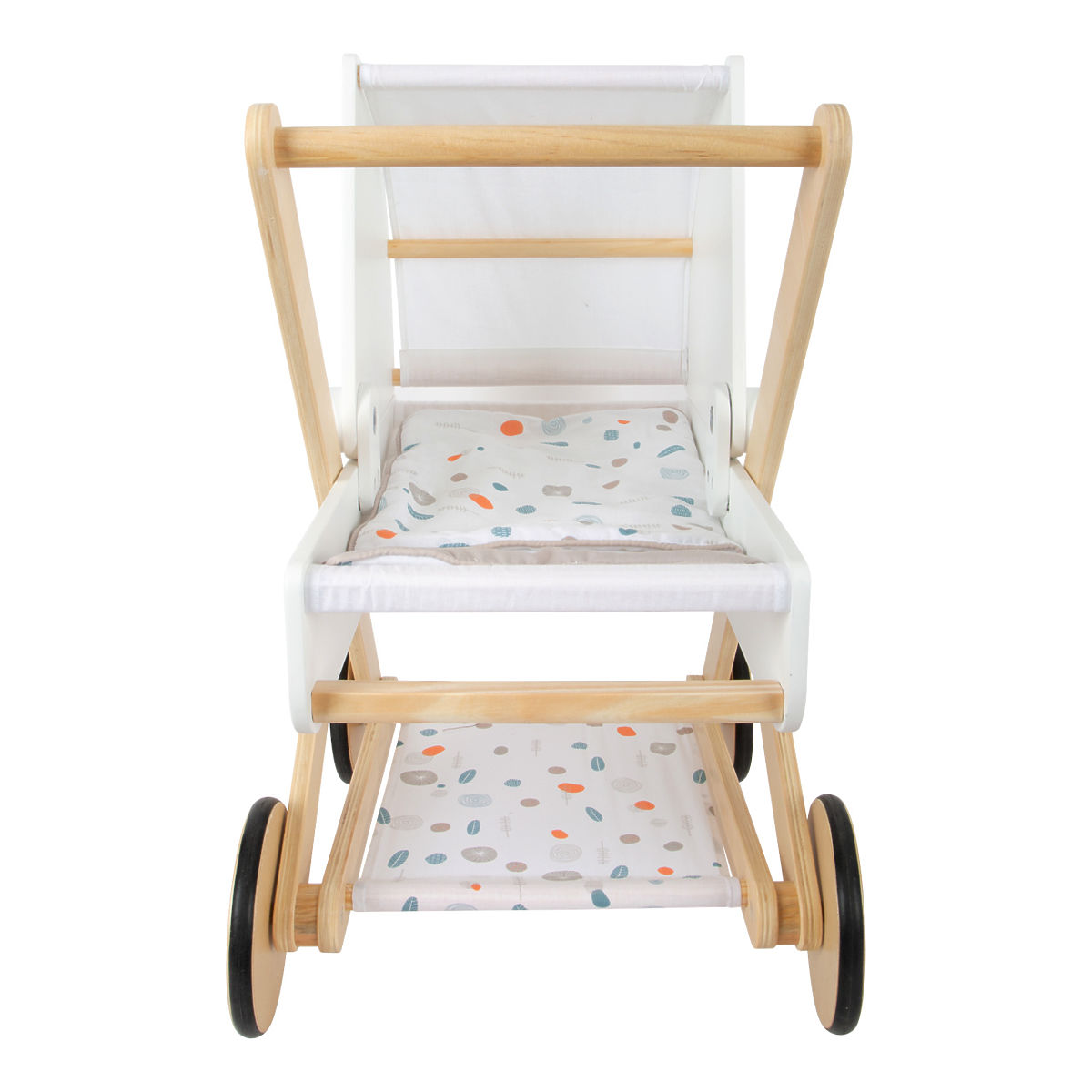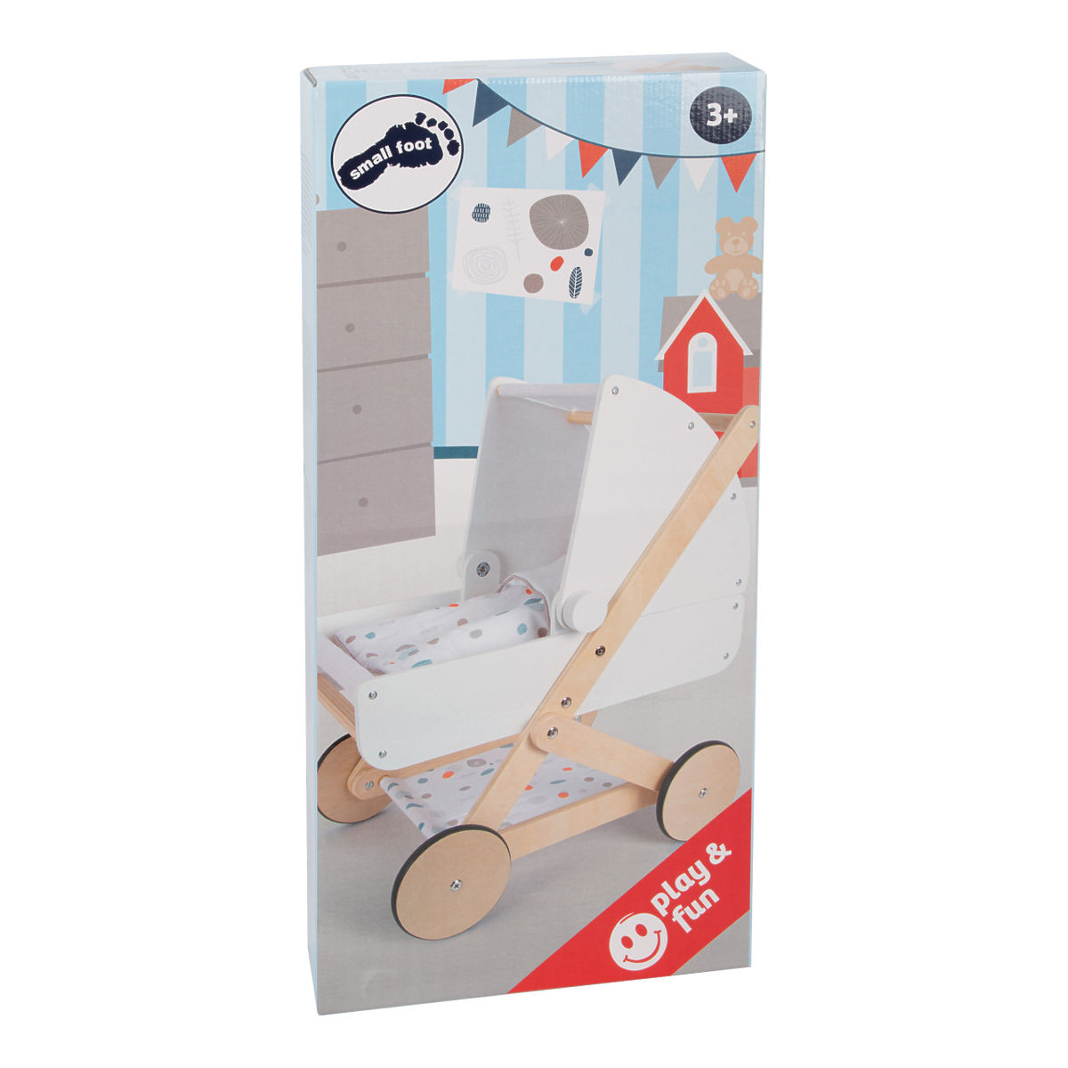 For dolls, plush toys, and their friends, only the best! This modern doll stroller will impress you with its gentle, linear Scandinavian design and the storage space under the seat. Thanks to the foldable canopy, dolls and plush toys can look forward or backward from the stroller. The reversible and gender-neutral bedding with an oversized quilt ensures that dolls and plush toys up to 46 cm will be comfortable. The stroller has quiet rubberized wheels. A modern stroller with natural wood elements and washable textiles is just waiting for someone to take a ride! It is very stable despite its low weight and fits into any room thanks to its neutral design. Main features: 2-in-1: With the foldable canopy, dolls and plush toys can look forward or backward Practical storage space under the seat Rubberized wheels for quiet and safe rides Stable construction despite low weight Suitable for dolls and plush toys up to 46 cm Rounded edges and visible wooden elements Reversible gender-neutral bedding, oversized quilt Scandinavian design, soft color palette, elements from the "Little Button" series Little Button The Little Button range of attractive doll accessories offers a wide variety of products, from strollers to high chairs to wardrobes. Customers are easily captivated by the uniform functional and modest design utilizing straight lines and subdued neutral colors. This allows them to create cohesive harmonious sets that complement modern interiors tastefully. Ingenious construction and quality craftsmanship help ensure high stability, safety, and long durability. Use them to create a stylish doll corner where your children can develop their imagination and caregiving skills.