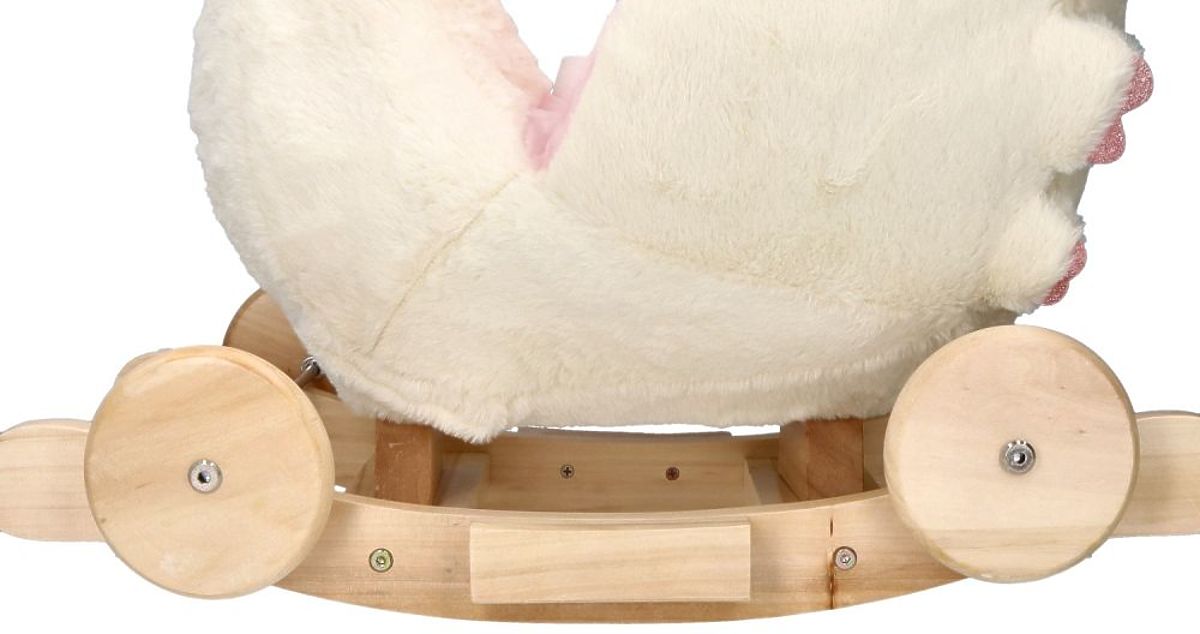 Toys of this type develop imagination and motor coordination. By rocking, the child must coordinate body movements with the rocking horse, which improves their sense of balance. The safety of play is ensured by the seat and safety belt. If the child leans too far forward, they also have comfortable support in the form of the swan's soft neck.