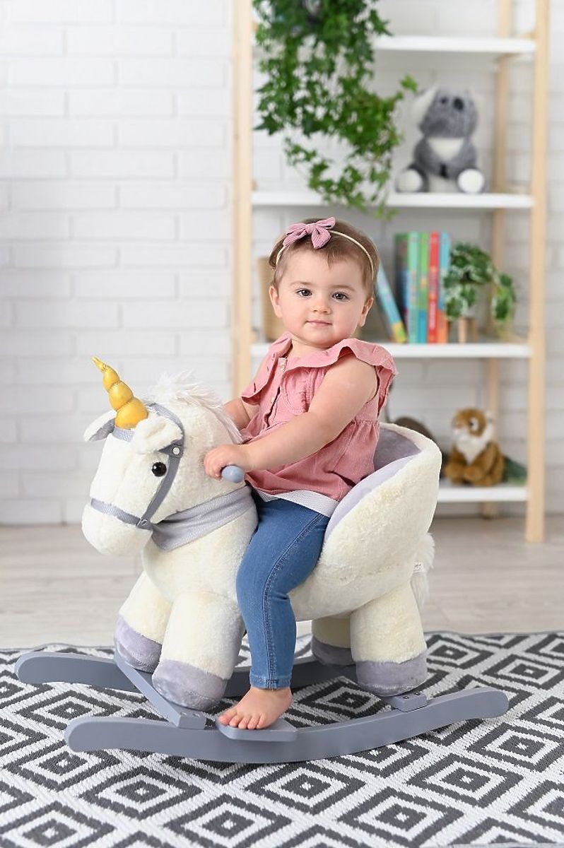 The charming rocking unicorn can't wait to meet its new friend. Your child will comfortably settle into the plush chair to embark on a long journey full of adventures with their sweet pony :)