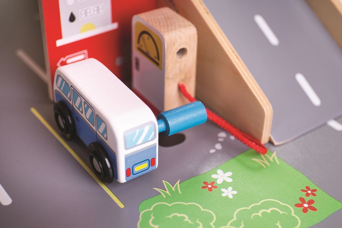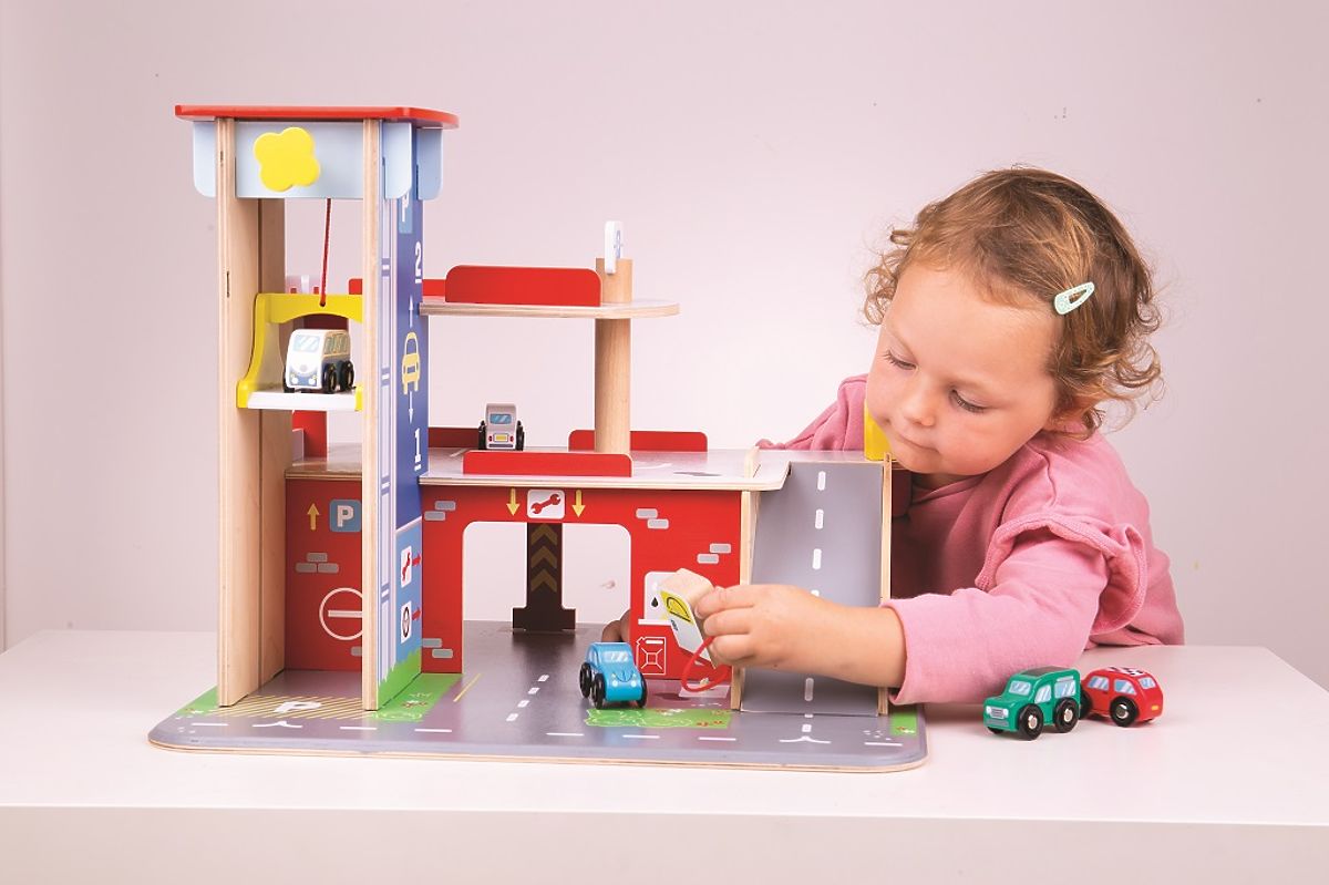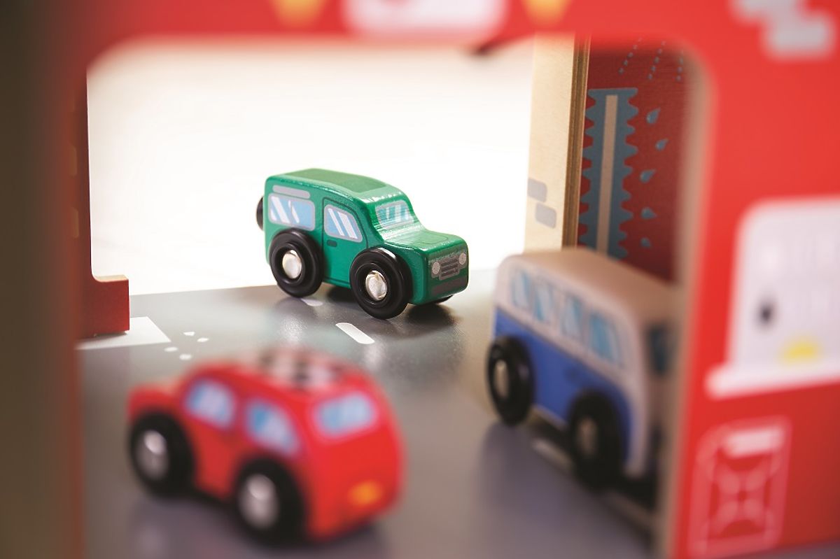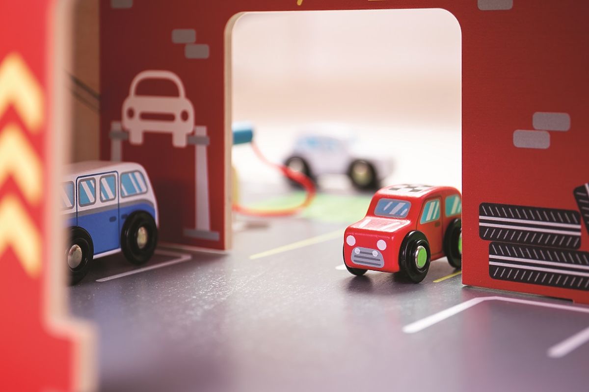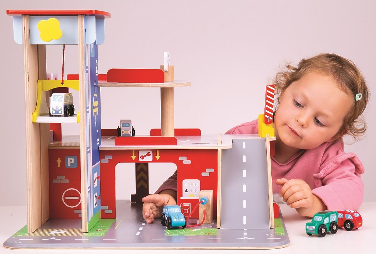 Children will enjoy a fun-filled playtime on each of the three floors of the garage with a parking lot. On the ground floor, they can drive the car onto a working elevator and then go up to the second floor to park. On the ground floor, children will find a service station, car wash, and pump. Cars can leave the first floor using the elevator or the ramp, but be careful, cars must wait for the barrier to lift! The highest point of the garage is the helipad. This garage has everything a little driver needs to get from point A to point B. It supports creativity and imagination. It develops hand-eye coordination, fine motor skills, and dexterity. Can be complemented with Bigjigs Toys and Bigjigs Rail cars. Made from high-quality materials from responsible sources. Main features: 3 floors with parking and helipad, functional elevator, service station, car wash, and pump on the ground floor.
