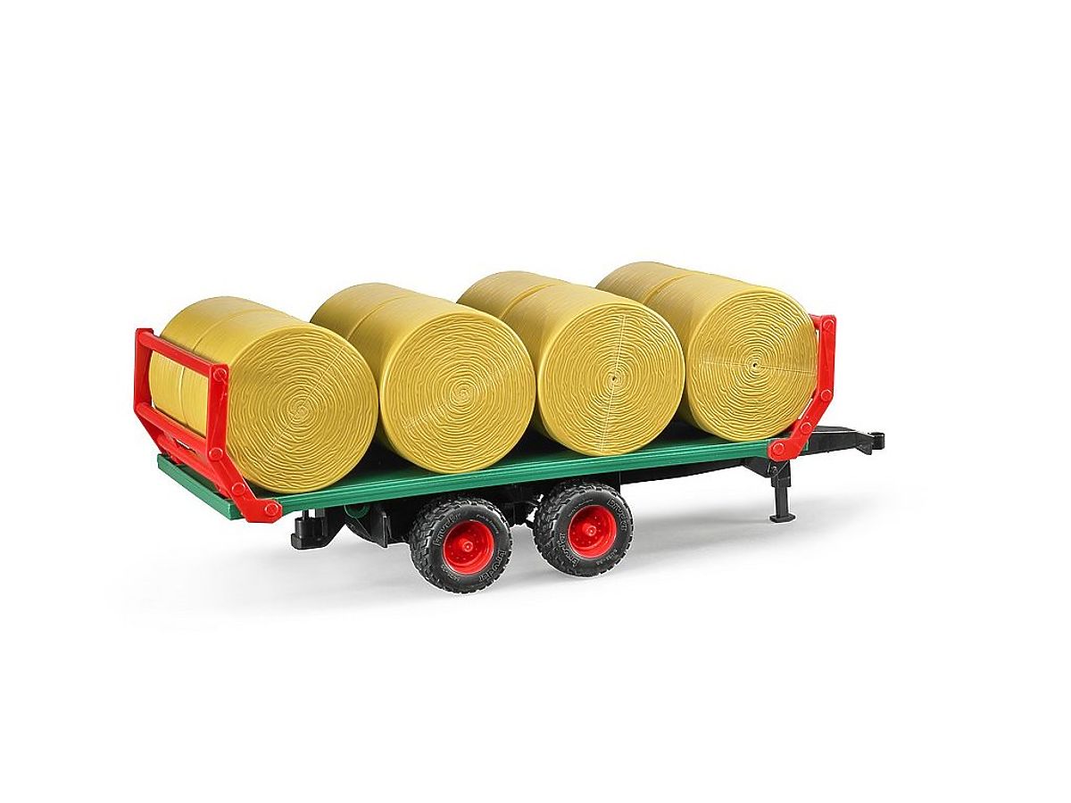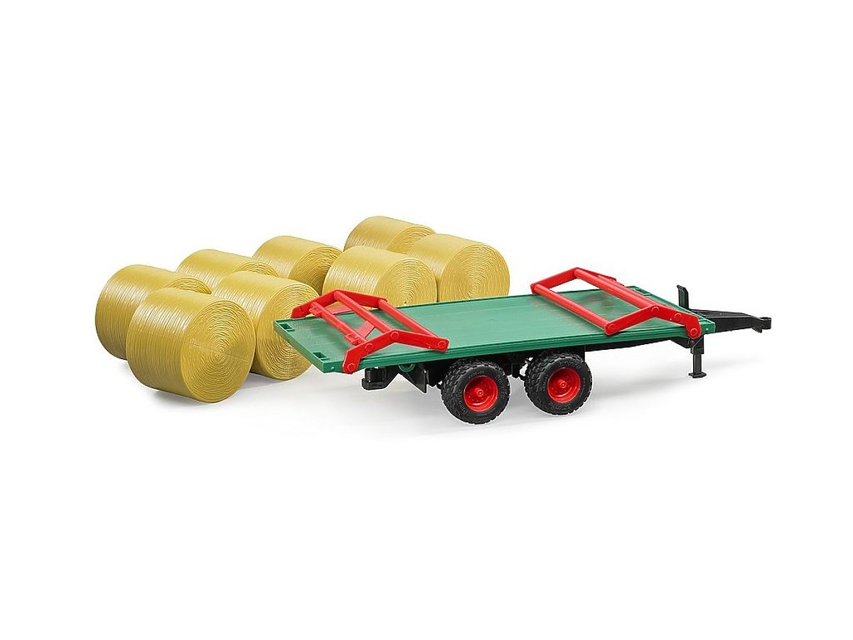A transporter that can carry 8 straw bales. The bales are included with the product. It can be attached to all tractors. Made in Germany from high-quality materials. Main features: detailed model of transporters, 8 bales included, compatible with Bruder tractors, made in Germany.