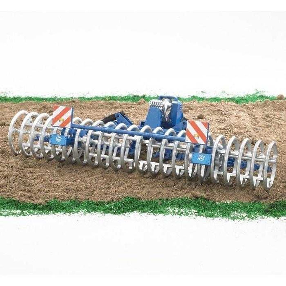 The Lemken VarioPack cultivator is a machine used for crushing soil after plowing. It is equipped with folding arms that can be secured during transport. Its advantage is easy assembly. It can be attached to both the front and rear of tractors. It can be connected to all BRUDER tractors and machines from series 20xx, 21xx, and 30xx. Made in Germany from high-quality materials. Main features: disc rotation and folding function, made in Germany.