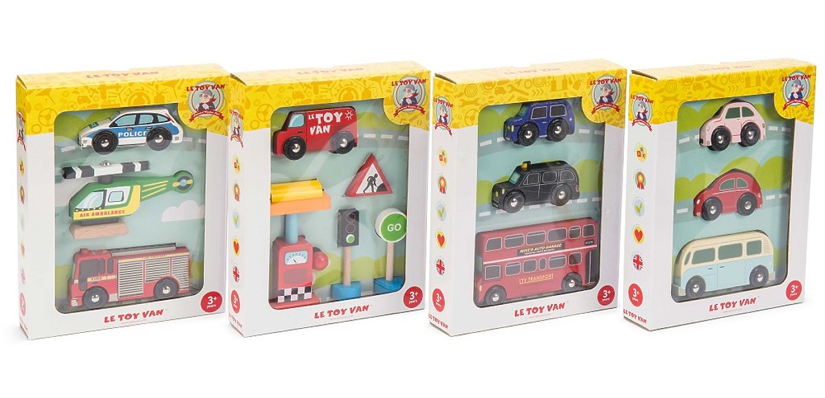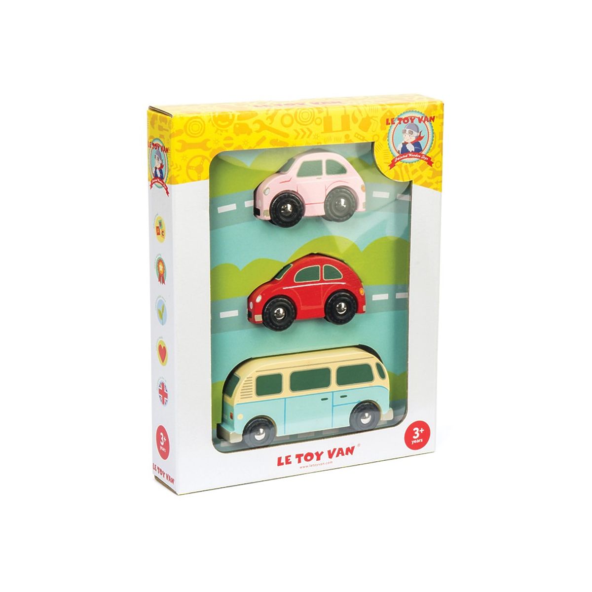 A set of retro cars for all children who love to play. This beautiful traditional toy in pastel and vibrant colors inspires imaginative play. The three cars in the package are compatible with Le Toy Van garages, play mats, and train sets. This award-winning toy is sure to bring a smile to children's faces. Toys with a Purpose: All toys from Le Toy Van are made to last. Lovingly designed by skilled craftsmen using ethical practices and sustainable materials that are kinder to our planet. Main features: ethically made from sustainable wood, tested to the highest standards, painted with non-toxic water-based paints, inspires imaginative play, develops cognitive skills. Toy Awards: Independent Toy Gold Award 2016. Cars & Construction: The Le Toy Van construction and motor collection has won many awards, specifically over 15 awards for imaginative cars and construction toys. They support children's imagination, are perfect for imaginative play, develop creativity, and playfully improve children's hand-eye coordination.
