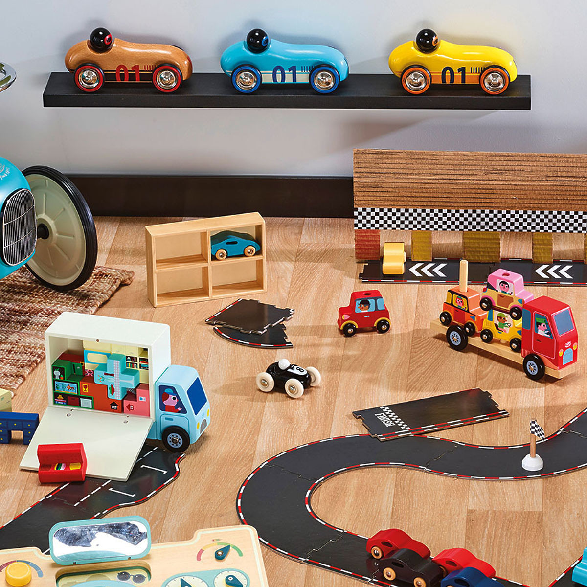 An extraordinary car with rounded aerodynamic shapes in a unique design, intended for play as well as an attractive interior accessory or collectible piece. Playing with the car allows the child to use many skills: fine motor skills, dexterity, imagination, creativity. They can mimic engine or siren sounds, park in a garage, or go for a drive. Playing with other children or family members teaches sharing, cooperation, and imitation, thereby developing important social skills. The car is made from solid beech wood, hand-painted with safe colors using the traditional immersion process. Made in France, delivered in a printed box. Main features: develops fine motor skills and supports proper grip, unique design and craftsmanship, made from solid beech wood, unique hand painting, packaged in an attractive box, suitable as a gift, collectible piece, or interior accessory, made in France.