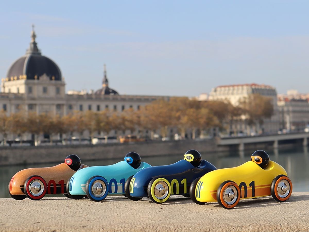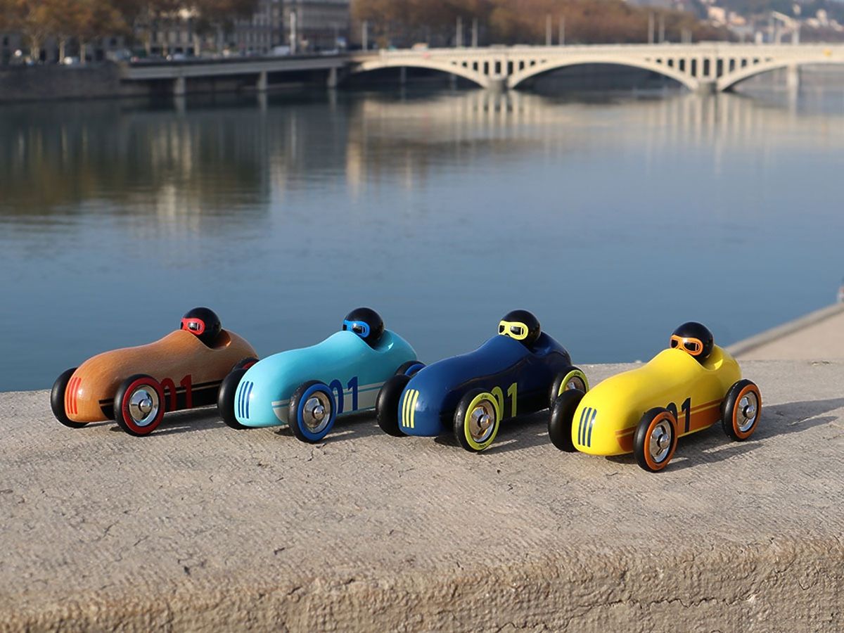 An extraordinary car with smooth aerodynamic shapes in a unique design, intended for play as well as an attractive interior accessory or collector's item. Playing with the car allows a child to use many skills: fine motor skills, dexterity, imagination, creativity. They can mimic engine or siren sounds, park in a garage, or go for a drive. Playing with other children or family members teaches sharing, cooperation, and imitation, thereby developing important social skills. The car is made from solid beech wood, hand-painted with safe colors using the traditional dip-painting process. Made in France, it comes in a printed box. Main features: develops fine motor skills and supports proper grip, unique design and craftsmanship, made from solid beech wood, unique hand painting, packaged in an attractive box, suitable as a gift, collector's item, or interior accessory, made in France.