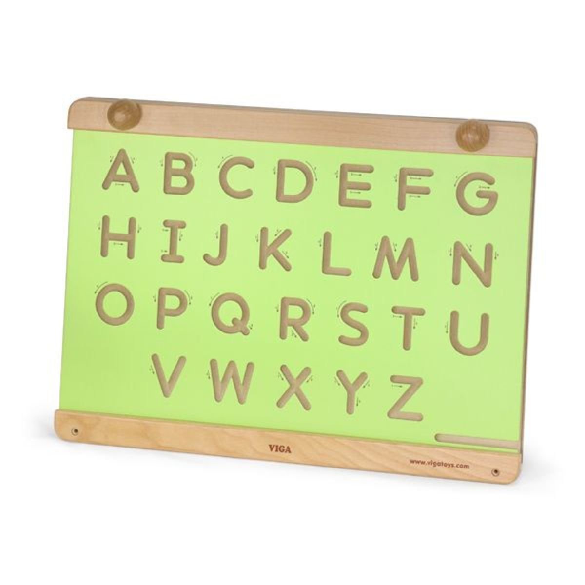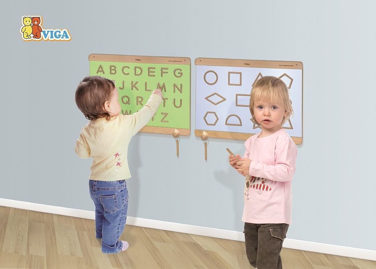 The lowercase template is a perfect preparation for writing. Hang the frame on the wall and exchange the templates to get a toy that also develops children's skills.