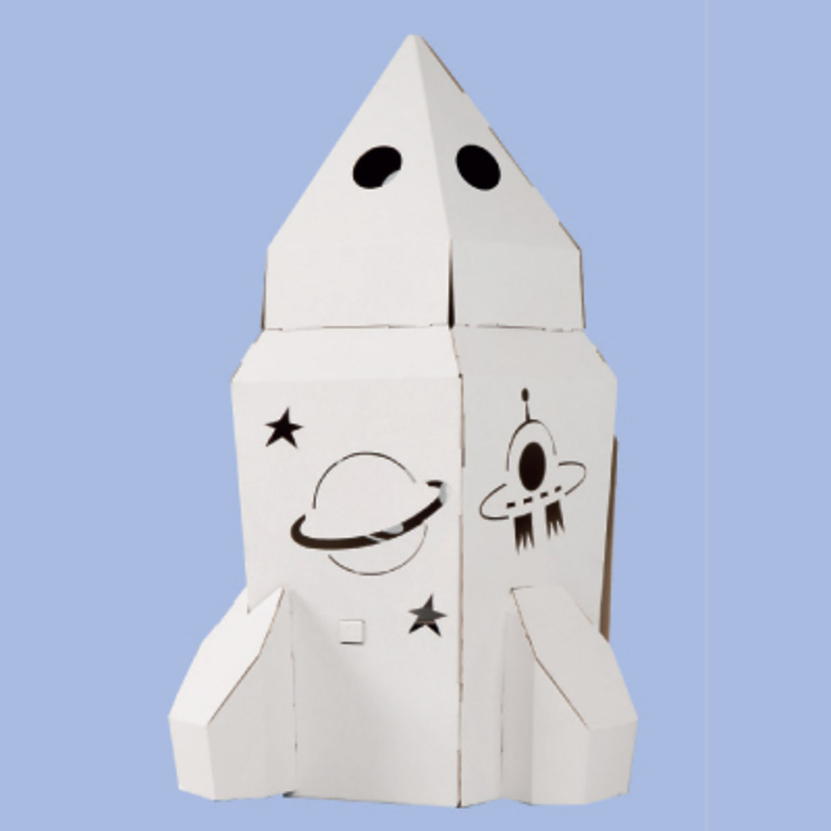 Cardboard shuttle MINI for small astronauts. Children will practice fine motor skills, develop creativity and have fun. The racket is made of 3 layers of white corrugated cardboard.