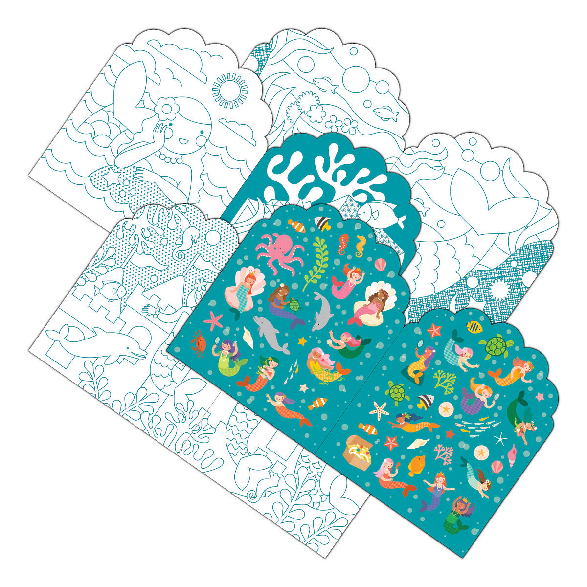 Coloring book with mermaid stickers for creative fun. .. more
