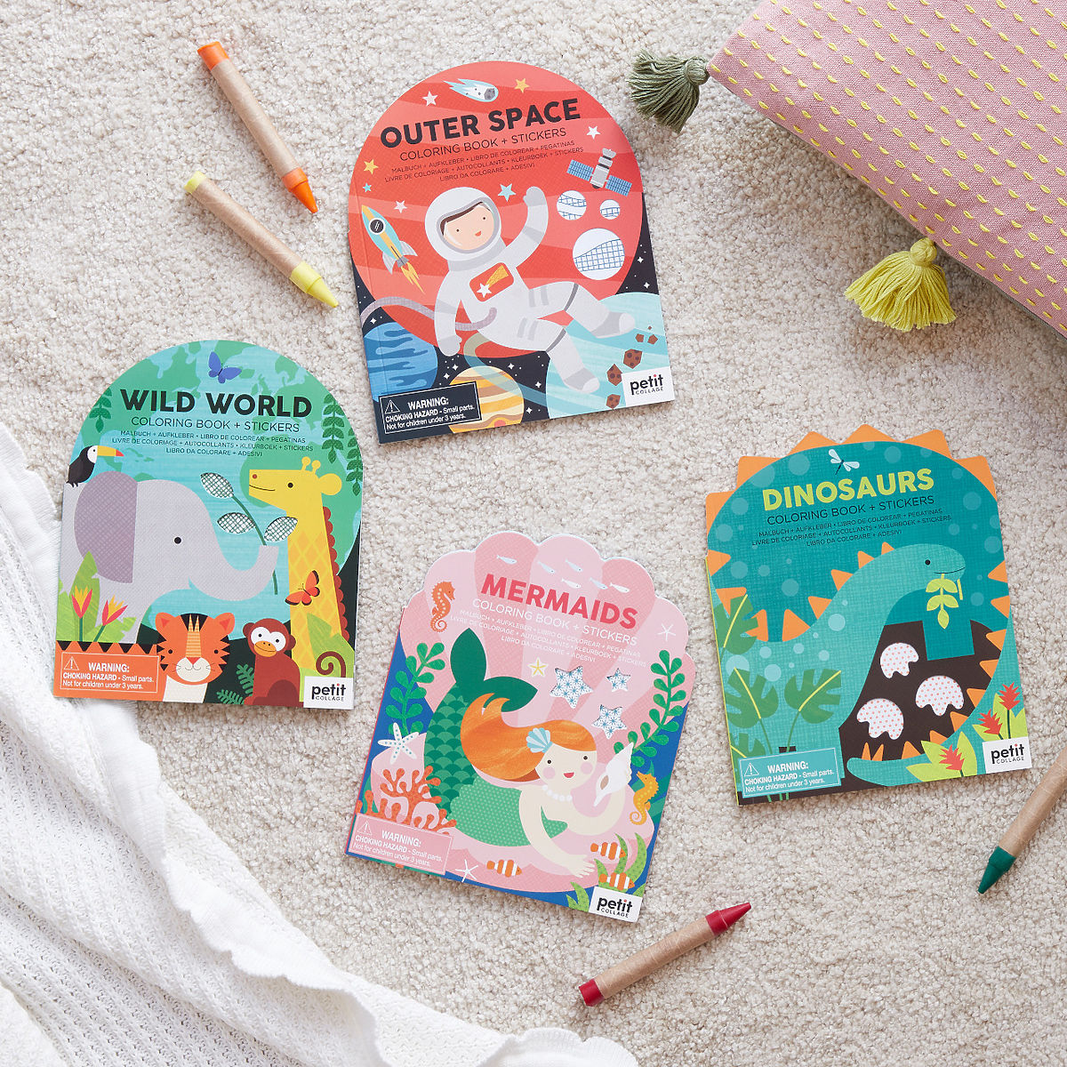 Get your crayons ready! Scenes with favorite children's characters or animals can be embellished with some of the large set of included colorful stickers after coloring. Simple cute shapes will delight children and spark their imagination. Made from sustainably sourced paper.