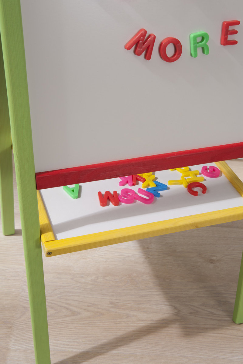 One side has the surface of a classic school board, and the other side is magnetic.