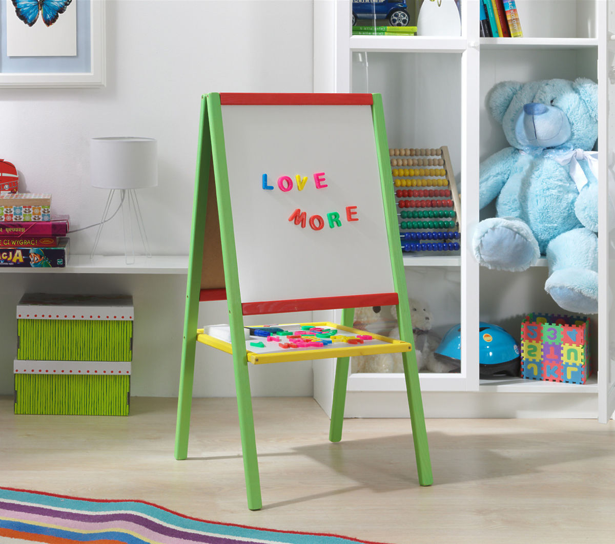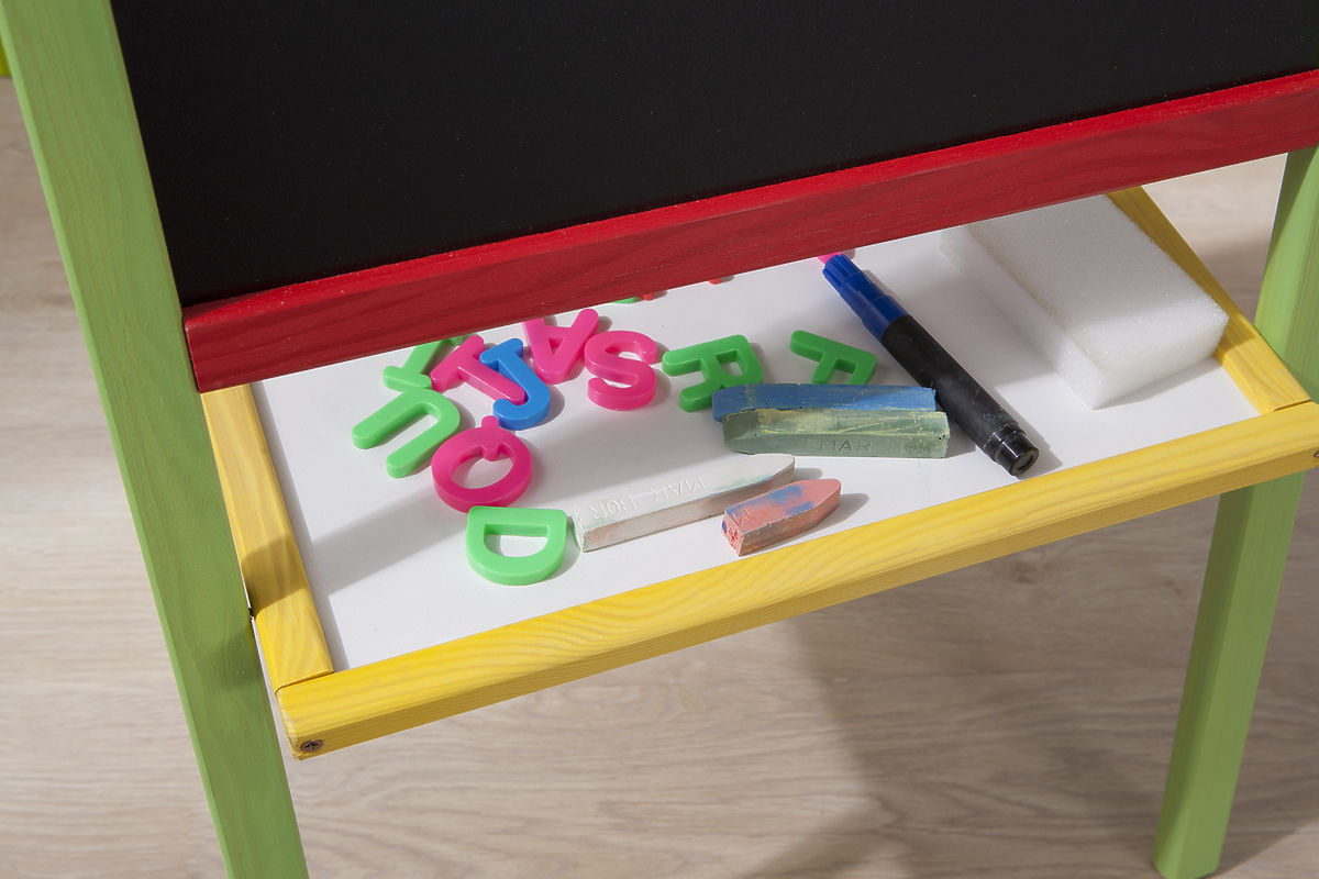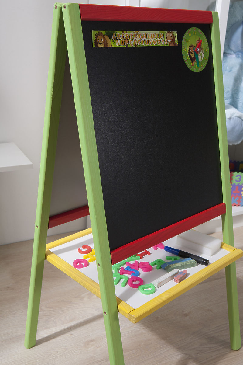 Double-sided board with magnetic and chalk surfaces. .. more
