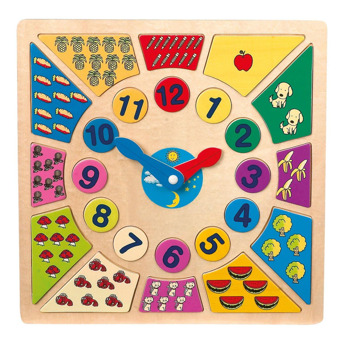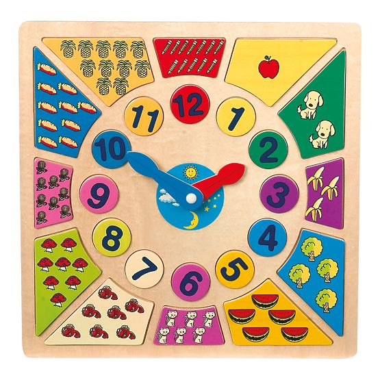 Eight-thirty? For ten ten? With this colorful toy, children will simply learn to recognize time and have a lot of fun doing it. You can remove the wooden pieces .. more