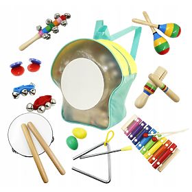 A set of 10 musical instruments in a practical backpack will delight every little musician. Thanks to a large selection of instruments, the whole family can be involved in creating music, sounds and melodies.