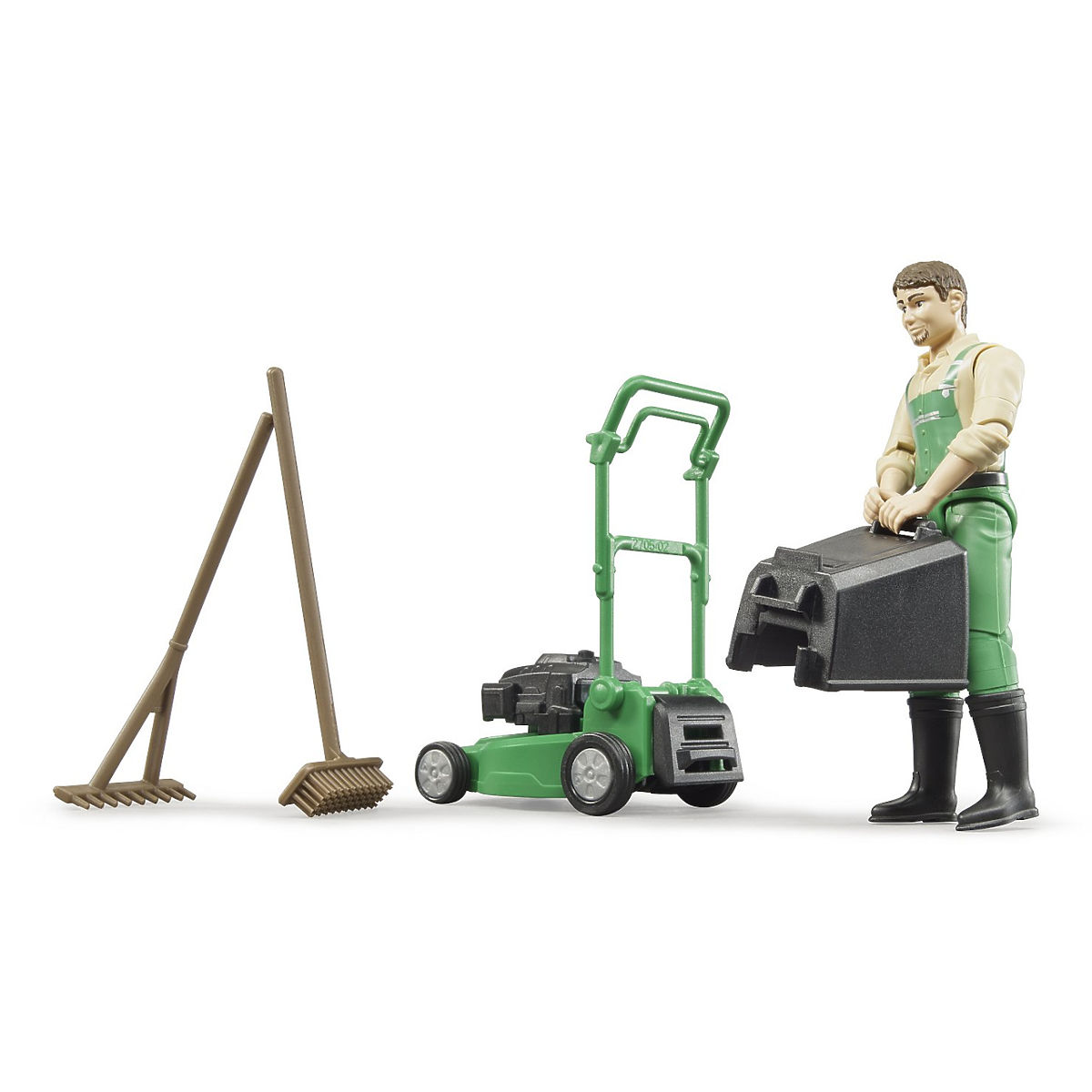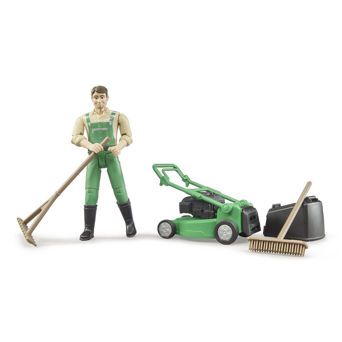 In the Bruder world, greenery also needs to be maintained to keep our BWORLD beautiful and cozy. The overgrown grass is tamed by the Bruder 62103 set Gardener with Lawn Mower and necessary tools. The figure has movable limbs and hands adapted to hold necessary tools such as a rake and other Bruder accessories. The package includes a rake and a broom. The lawn mower has a removable grass catcher and an adjustable handle suitable for the Bruder figure. Expand your Bruder construction world with another interesting character Bruder 62103 with accessories and enjoy even more fun. Made in Germany from high-quality materials. Main features: articulated gardener figure with accessories made in Germany