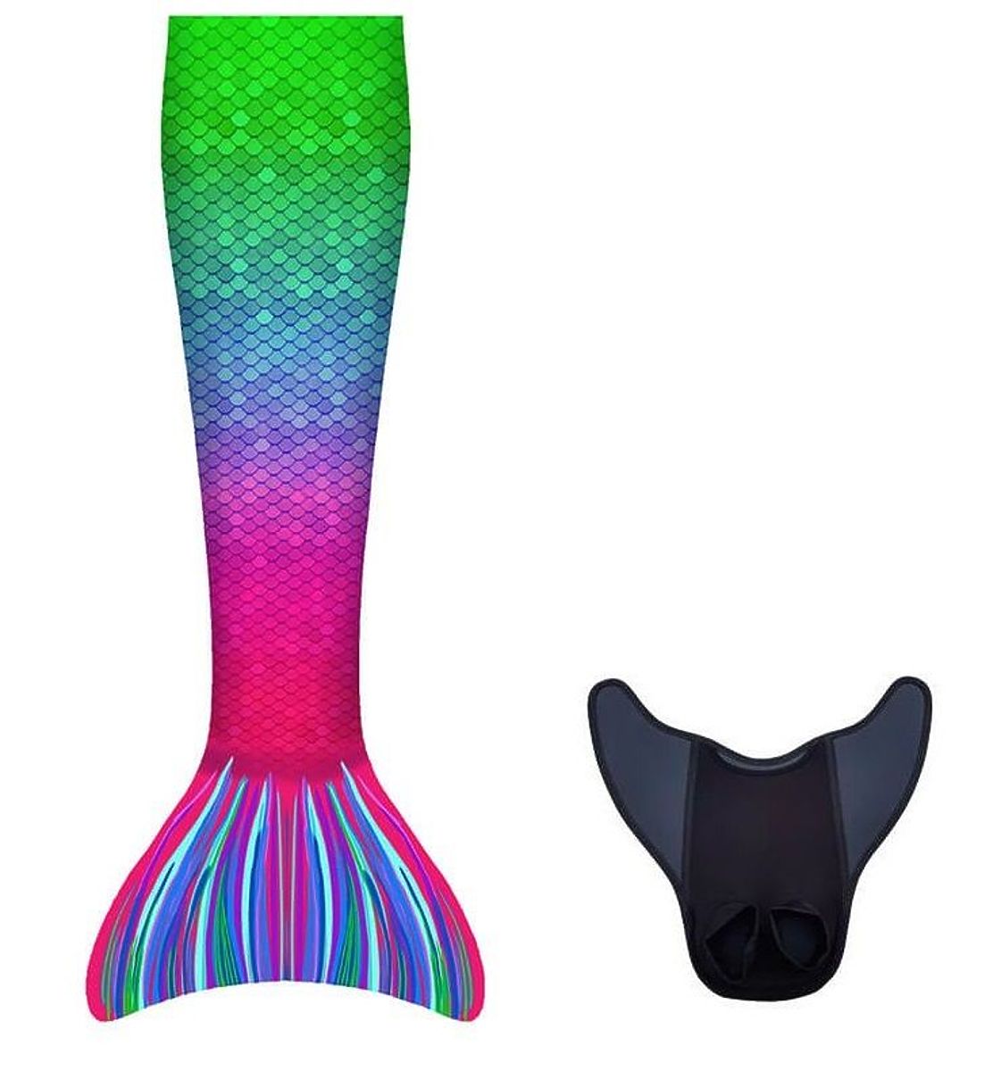 Mermaid tails are available in many colors (also for boys) and in a version with or without a bikini top. The two-piece set includes: