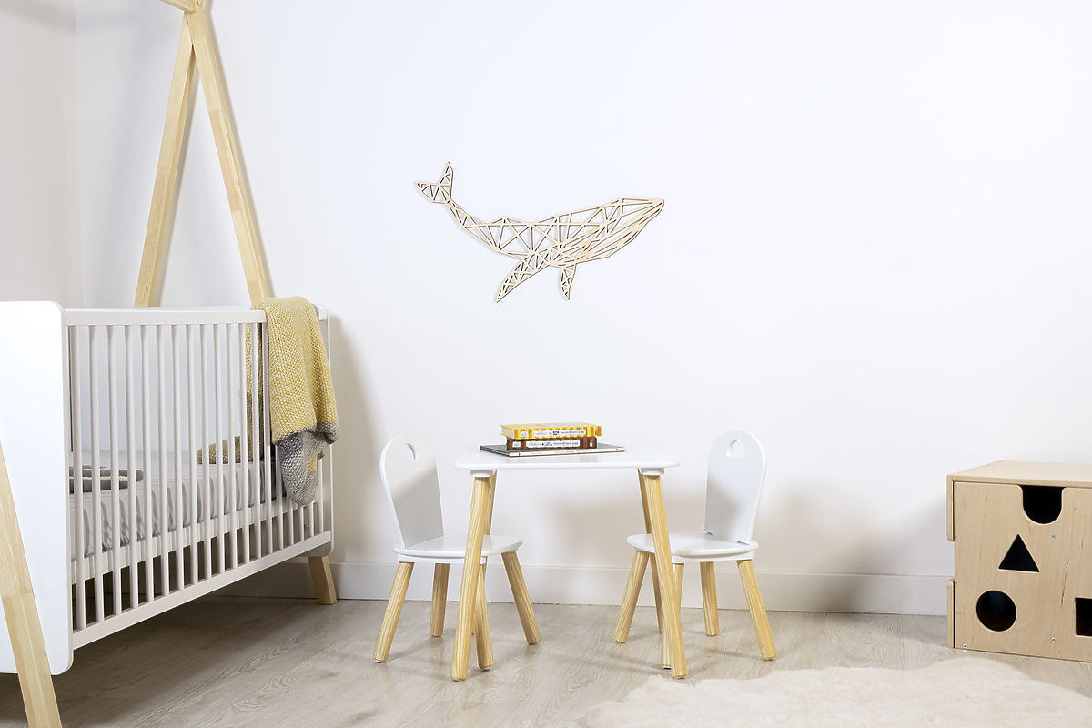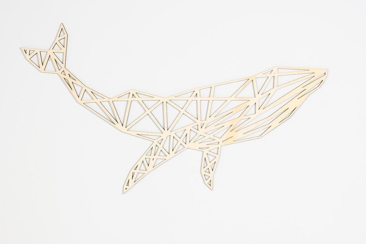 Wooden geometric image in the shape of a whale. Hanging plywood decoration is suitable for a children's room in Scandinavian style. Choose from several variants .. more