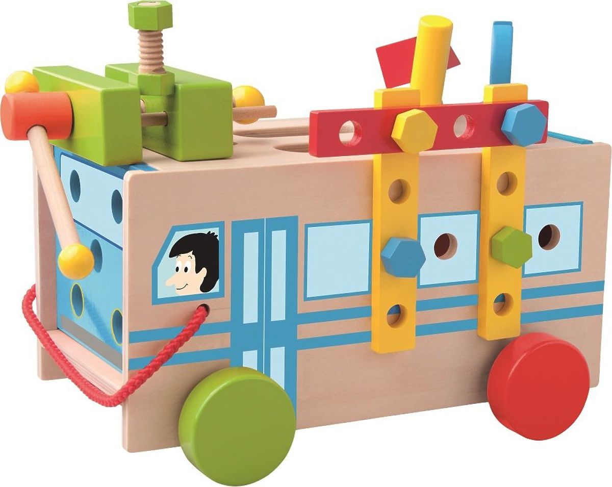 The toy develops fine motor skills in a fun way and, thanks to wooden elements that can be screwed to the walls of the bus, also stimulates children's imagination. In the set you will find everything you need for real diy.