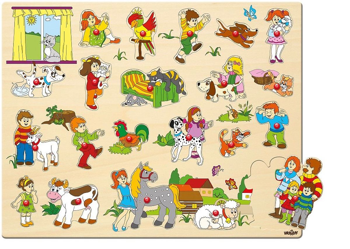 Banaby.eu   »   Toys   /   Wooden toys   /   Large Puzzle: Children and Their Animals