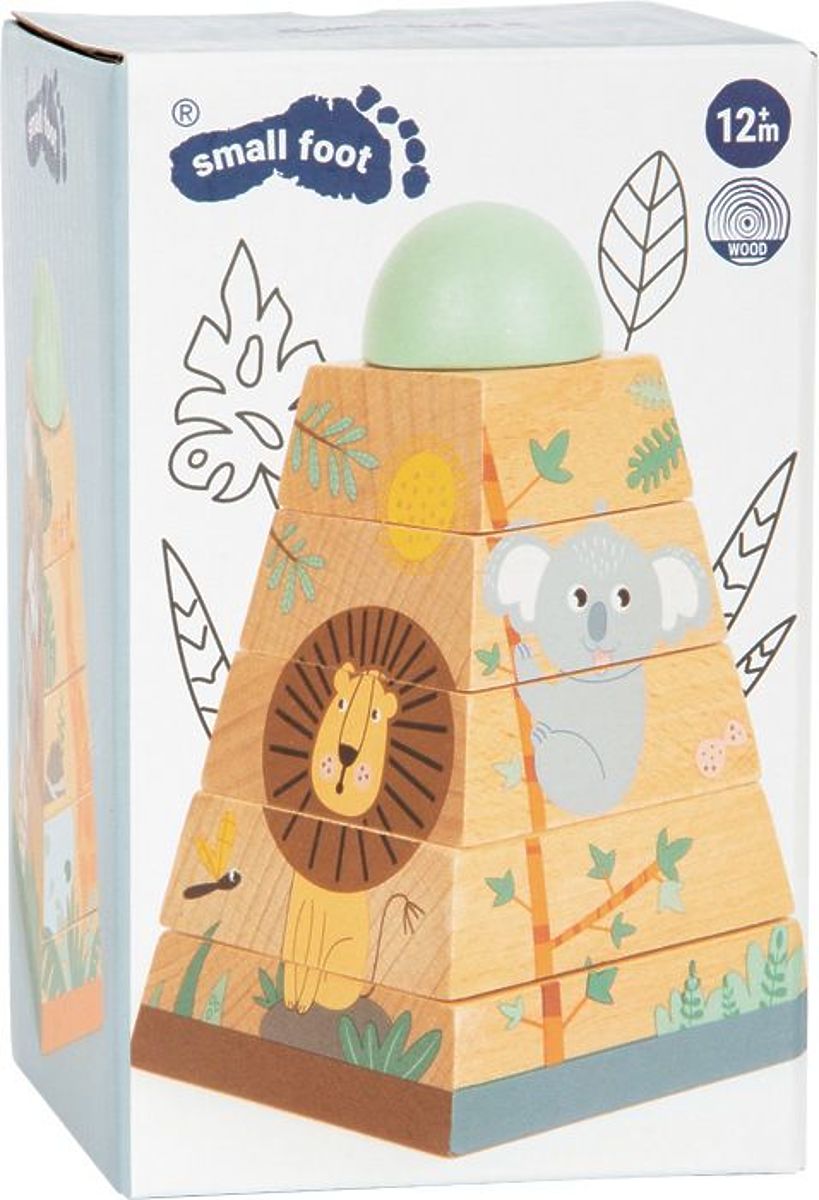 The stacking pyramid is a classic toy from our childhood. This time with a Safari animal theme, from the renowned German toy manufacturer Small Foot Design.