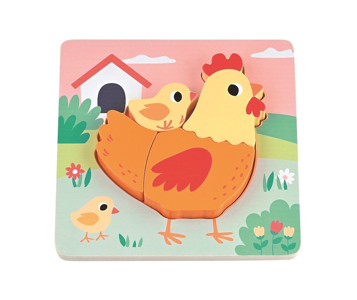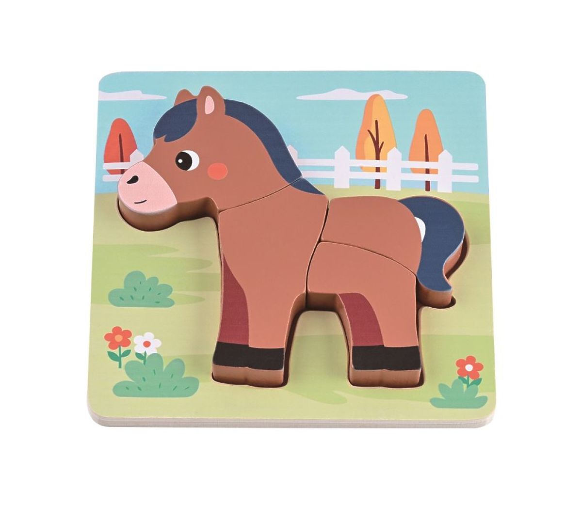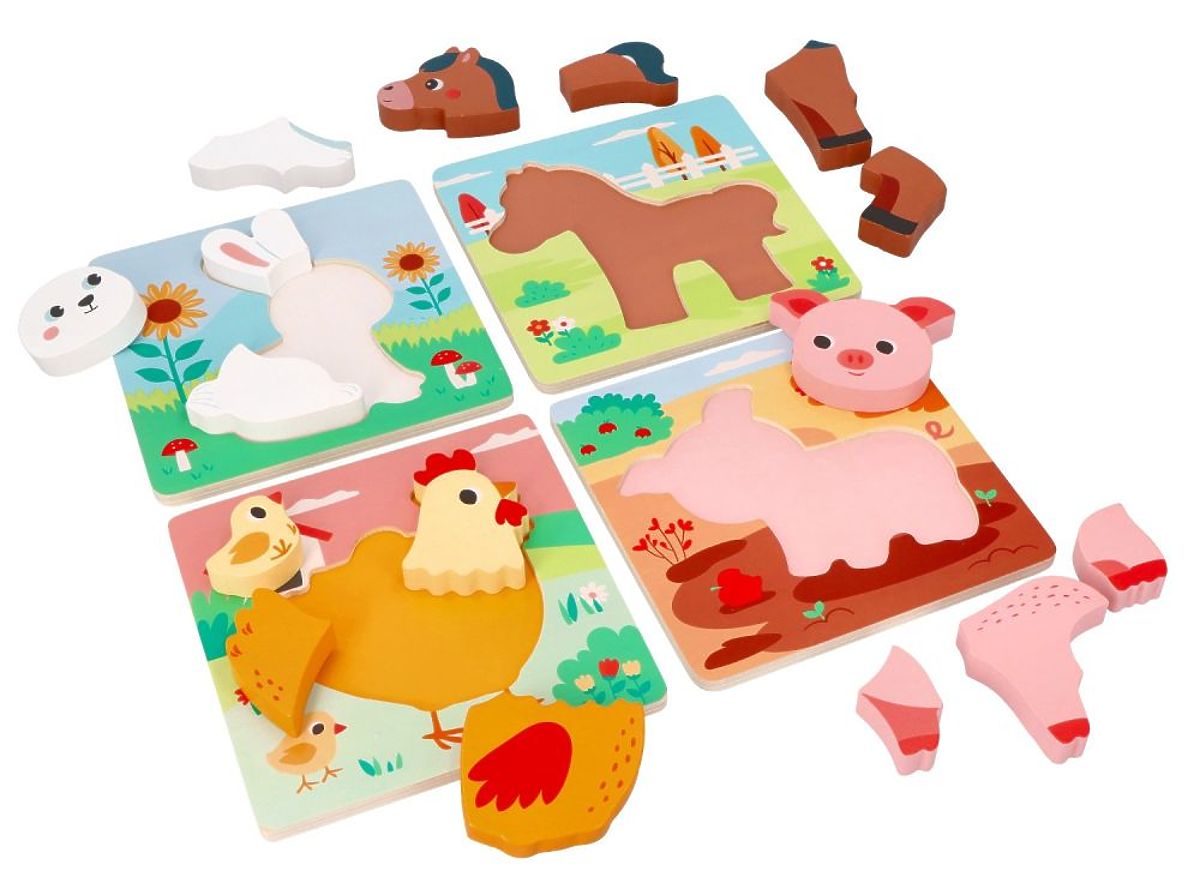 The set includes 4 puzzles featuring cute animals: a bunny, a horse, a hen with a chick, and a piglet.