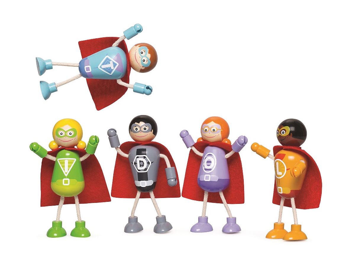 Is it a bird? Or a plane? No, it's a team of five superheroes! They are ready to save the world in their uniforms with masks and capes. They have flexible and adjustable upper and lower limbs, and each figure can stand or sit independently. The set includes both female and male figures. A great way to encourage children in creative and imaginative play. It develops hand-eye coordination, fine motor skills, and dexterity. Made from high-quality materials from responsible sources. Complies with European safety standards. Main features: 5pcs of super figures with flexible and adjustable limbs, supports creative and imaginative play, develops fine motor skills and dexterity