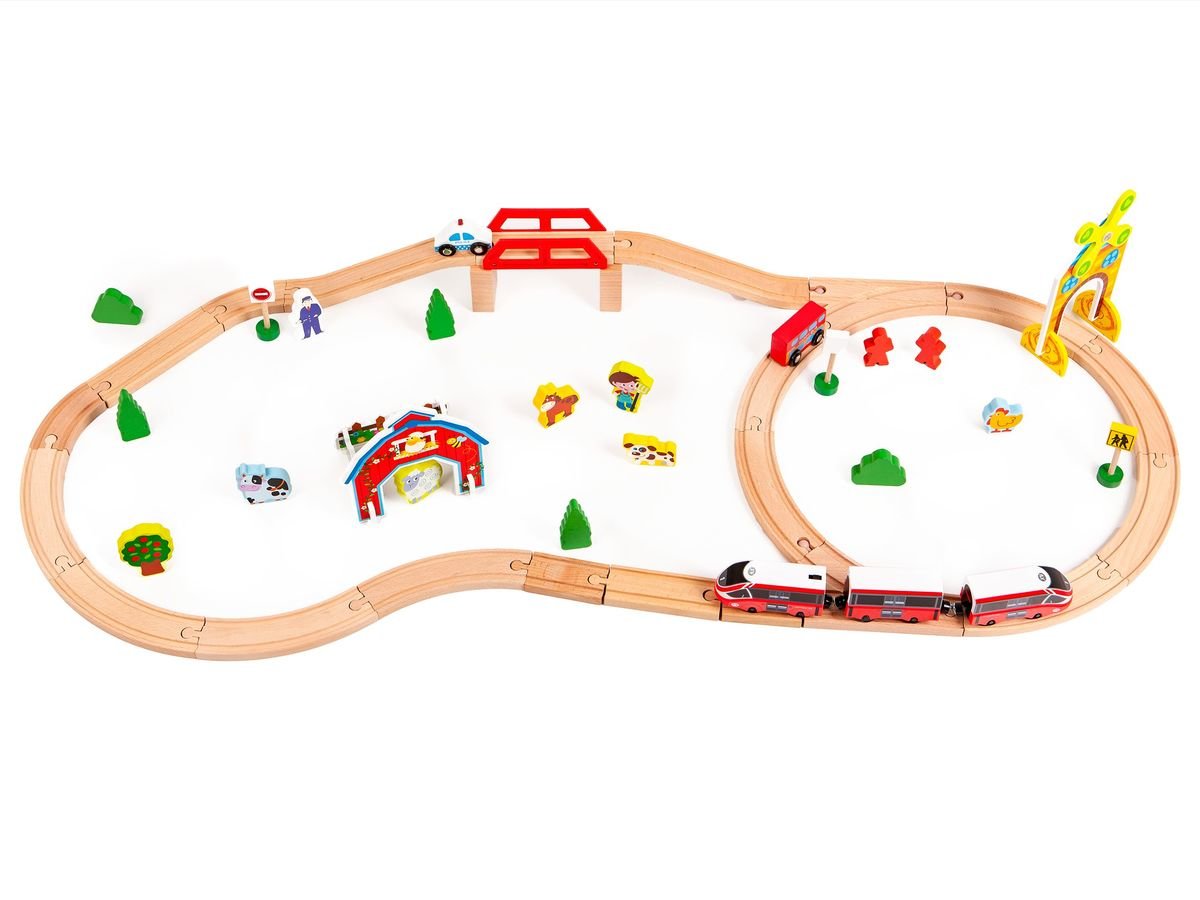 The train set with lots of interesting accessories offers space for various imaginative games. Thanks to a large number of accessories such as vehicles, traffic signs and buildings, a child with a toy can play for hours.